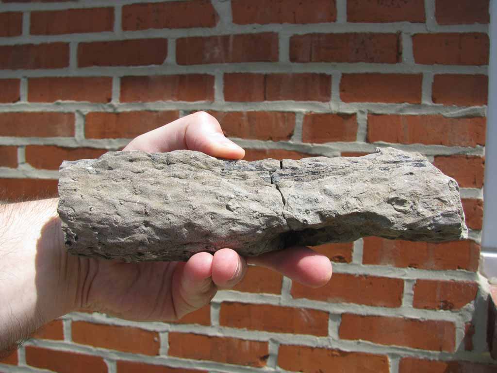 Calamites is a fossil genera that are common fossils in the Pennsylvanian swamp deposits. They often grew up to 30' high then although today the extant species are much smaller. The specimen below is part of a much larger fossil that represents the trunk of one of these ancient trees. It's from the coal mines near Hazard, KY.